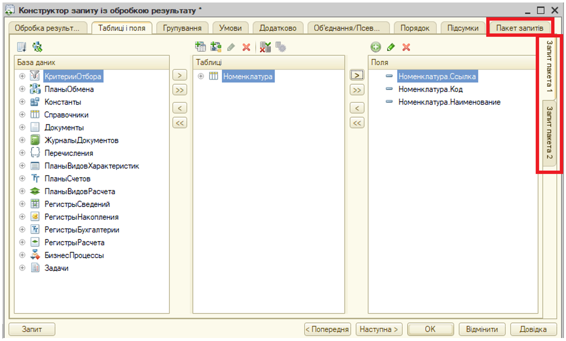 Опрацювання в конфігураціях системи BAS результатів пакетного запиту до бази даних окремо для кожного запиту в пакеті