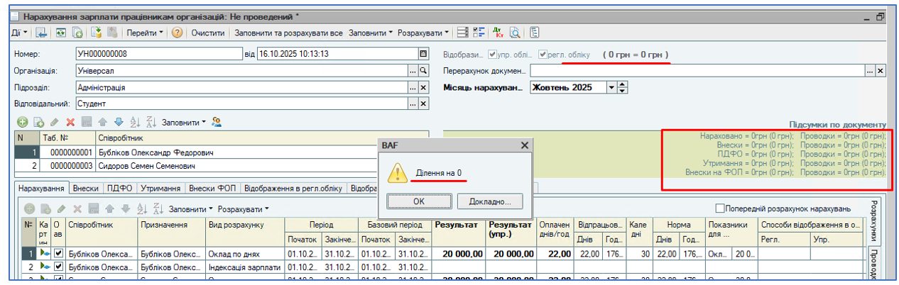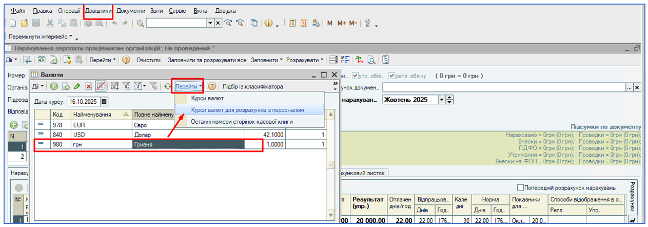 Чому при нарахуванні зарплати курс валюти дорівнює 0?
